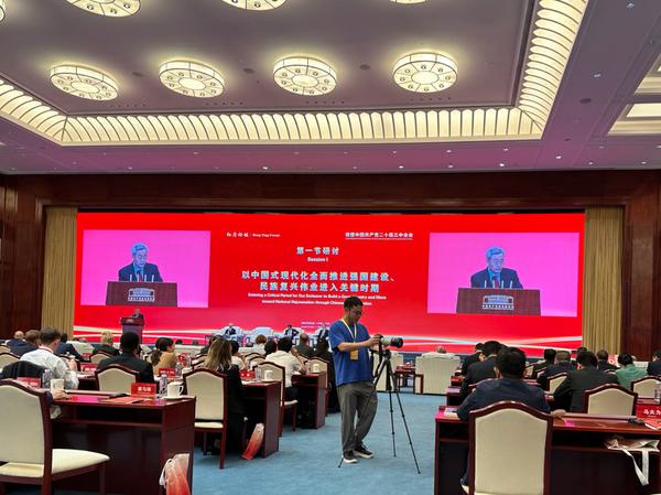 中央文献翻译研究基地归口管理部门中央党史和文献研究院第六研究部主任张士义在第一节研讨“以中国式现代化全面推进强国建设、民族复兴伟业进入关键时期”做全英文主旨发言。