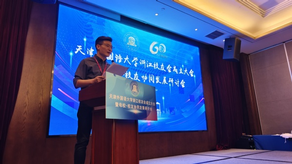 正值天外代表一行与浙江、上海、北京三地校友欢聚一堂的难得契机,成立大会同步举办了“母校—校友协同发展研讨会”,旨在深化校友与母校之间的情感纽带,共同探讨并推动天外与校友在多个领域的协同发展。会上,教务处处长王济军以“新时代、新文科、新使命”为主题,生动地阐述了天外“创新人才培养项目”的核心理念与实施路径,展现了学校在新时代背景下的教育使命与担当。国际合作与交流处处长张占奇分享了近年来天外在国际化办学等方面取得的丰硕成果,彰显了天外在全球视野下的开放姿态与卓越成就。