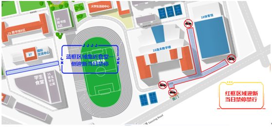 2.由于迎新当天学校车位紧张、人员密集,请校内教职工及三方人员尽量选择绿色出行,避免校园内车辆拥堵。