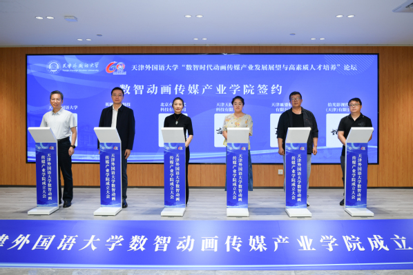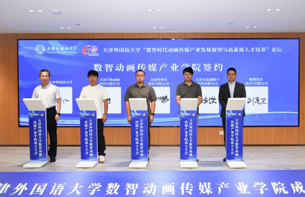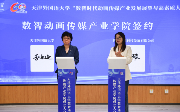 乐鱼·体育校长李迎迎与天津恩加智慧科技发展有限公司人力资源部总监闻雅签约并共同为“天外数智动画传媒产业学院”揭牌。教育部高等学校动画与数字媒体教学指导委员会、市教育两委、津南区人社局负责人、英雄游戏科技股份有限公司执行董事王奕共同见证。