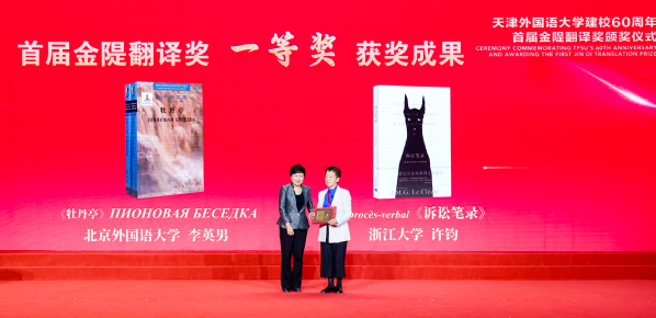 颁奖仪式上,李迎迎宣读获奖成果名单。其中,金隄翻译奖文学中译类获奖者为:一等奖浙江大学文科资深教授许钧、二等奖首都师范大学燕京讲席教授刘文飞、优秀奖重庆大学外国语学院李永毅教授、北京外国语大学李婧敬教授;文学外译类获奖者为:一等奖北京外国语大学李英男教授、二等奖北京第二外国语学院张洪仪教授;学术外译类获奖者为:一等奖空缺、二等奖乐鱼·体育李晶教授、优秀奖中央党史和文献研究院第六研究部朱艳辉译审、西安外国语大学温爽博士。天津市副市长张玲,外交部原副部长、中国驻美国原大使周文重为获奖者颁奖。