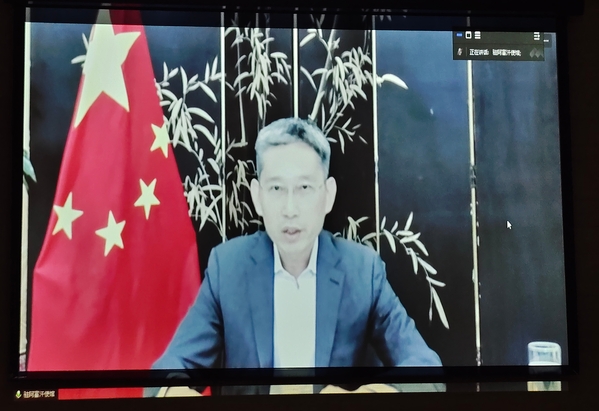 宣讲会上,天外1995届英语专业校友、中国驻阿富汗大使赵星通过线上连线方式,为同学们开展专题讲座。他结合中央外事工作会议精神,解读了当前国际形势和全球发展面临的挑战,强调外交队伍要对党忠诚、勇于担当、敢斗善斗、纪律严明。希望同学们坚定理想信念,时刻保持学习,具备奉献精神,严谨细致作风,投身外交事业,在推动世界和平、发展与合作方面有所作为。