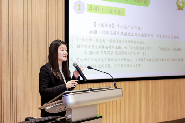 主旨发言后,天外韩语系教师高晓婷分享了《韩国语专业优秀课程思政案例》,探讨了课程思政方面的创新实践经验。