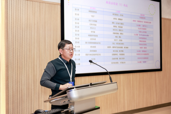 主旨发言环节汇聚了多位韩国语教育领域的权威学者。广东外语外贸大学亚非语言文化学院院长、中国韩国(朝鲜)语教学研究学会会长全永根教授以《新文科背景下朝鲜语专业建设》为题,分享了广东外语外贸大学“外语+专业”人才培养的宝贵经验,阐述了新文科建设背景下朝鲜语专业教育的未来方向。