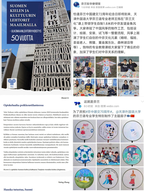 天外芬兰语专业致力于用外语讲好中国故事,培养学生做文化自信的践行者。邀请中外专家学者(芬兰国会议长、中芬大使参赞、教授、学者、作家等)来校讲座,拓展学生视野;指导学生录制宣传片,在芬兰图尔库举办的中国节活动上播放,受到一致好评;指导学生用芬兰语写作,2篇文章入选芬兰纪念文集;带领学生开展体验式教学活动,多次被芬兰在华官网报道;联合外籍专家翻译录制的《入境健康提示》等为芬兰在华人员和到华人员提供语言支持。