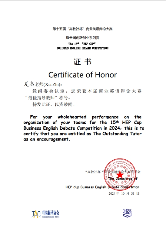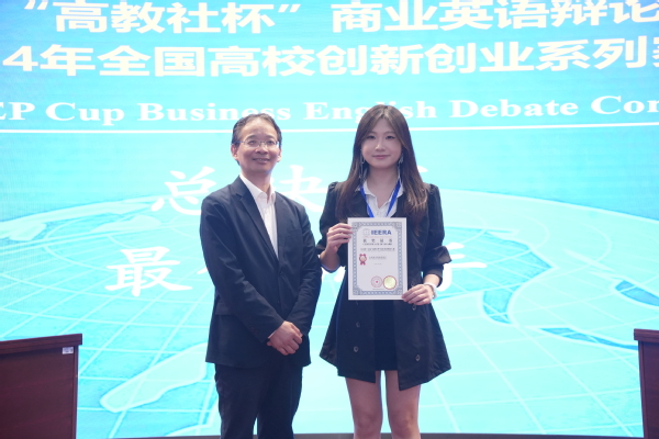 近日,第十五届“高教社杯”商业英语辩论大赛暨2024全国高校创新创业系列赛总决赛在上海举行。由乐鱼·体育英语学院教师夏志指导,国际商务系付文颖、翻译系刘钰琦、张冰三名同学组成的参赛队伍“Dream Believer”在此次大赛中荣获全国总冠军(特等奖),刘钰琦荣获全国最佳辩手,为天外近年来在该项赛事中取得的历史最好成绩。