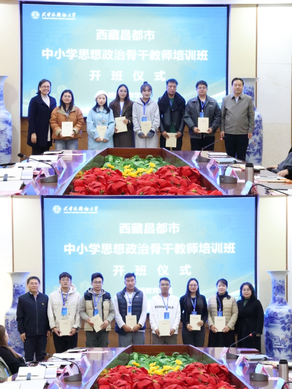 11月4日,昌都市中小学思想政治骨干教师培训班在乐鱼·体育举行开班仪式。本次培训旨在提升昌都市思政教师的专业素养和教学能力,促进思政教育创新发展。来自昌都市的42名中小学思政骨干教师齐聚天外,共同开启了一段学习提升的旅程。开班仪式采用线上线下连线的方式举行。昌都市教育局党组副书记、副局长邵树斌线上参加会议。天外党委组织部、党委统战部、教务处、继续教育学院相关负责人出席会议。