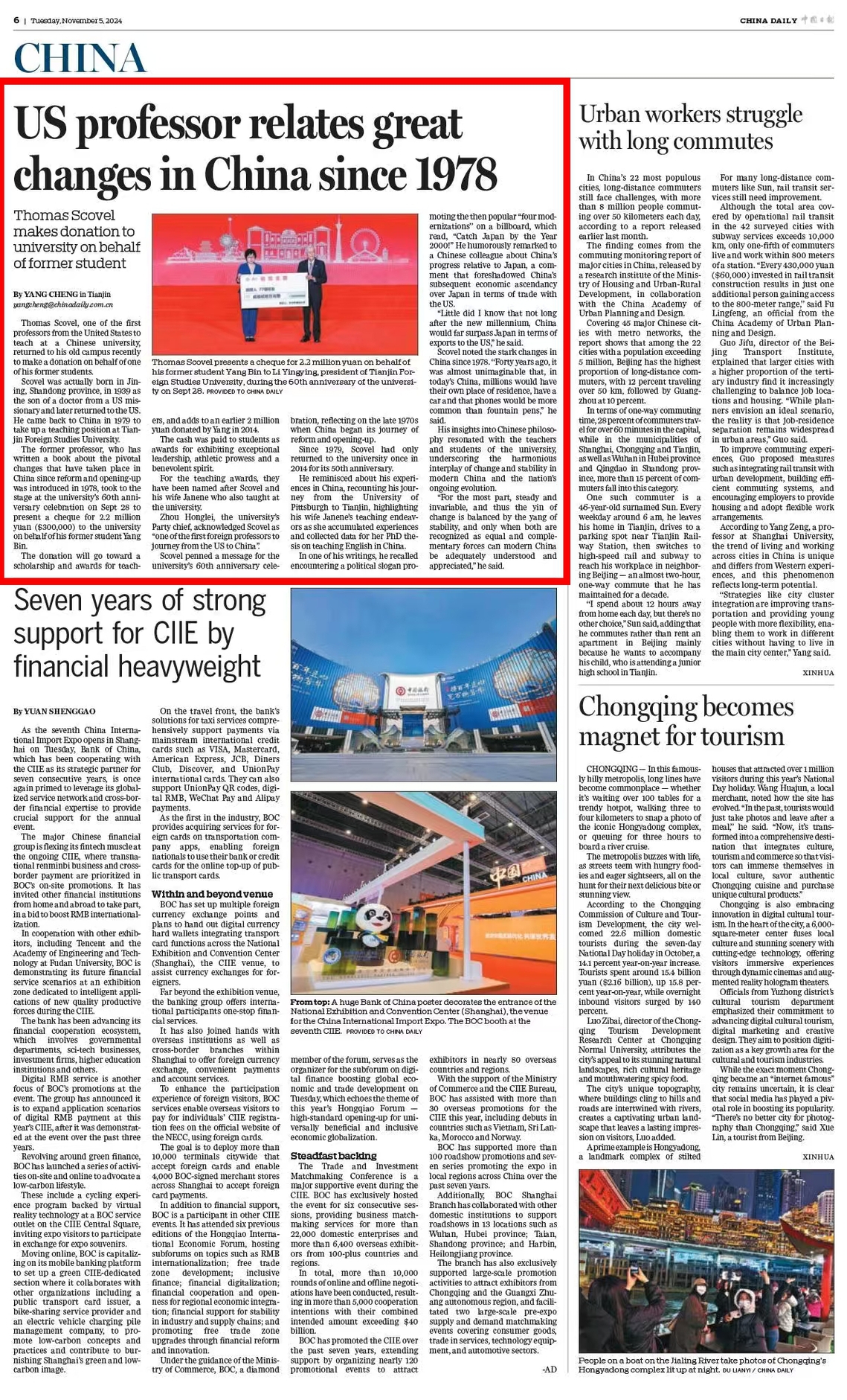 Scovel noted the stark changes in China since 1978. Forty years ago, it was almost unimaginable that, in today's China, millions would have their own place of residence, have a car and that phones would be more common than fountain pens, he said.
