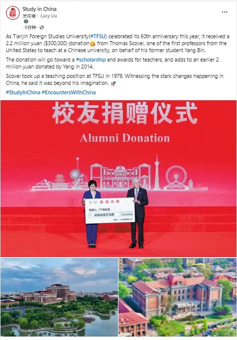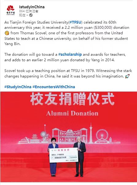 中国日报运营的教育部留学中国海外媒体账号转发相关报道,进一步扩大学校海外影响力。
