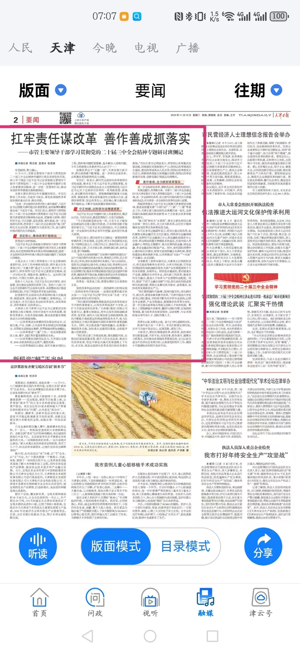 发展出题目,改革做文章。市委十二届六次全会通过《中共天津市委关于深入贯彻落实党的二十届三中全会精神,进一步全面深化改革、奋力谱写中国式现代化天津篇章的决定》,对天津进一步全面深化改革作出深入部署。