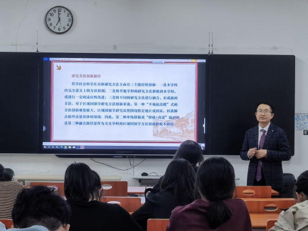 区域国别学学科建设的目标导向在于,为解决民族国家在推进区域合作及化解全球治理难题时所面临的历史之问、时代之问及世界之问,旨在有效回答“共同体范式”在链接民族国家、区域合作与全球治理的知识构造中如何发挥引领性作用的时代命题。在交流环节中,田庆立回答了学生提出的有关区域国别学研究的相关问题,现场气氛热烈融洽。同学们表示,对区域国别学研究产生了新的认识和兴趣,通过参加讲座增强了跨文化交流和理解能力,有助于培养国际视野和全球意识。