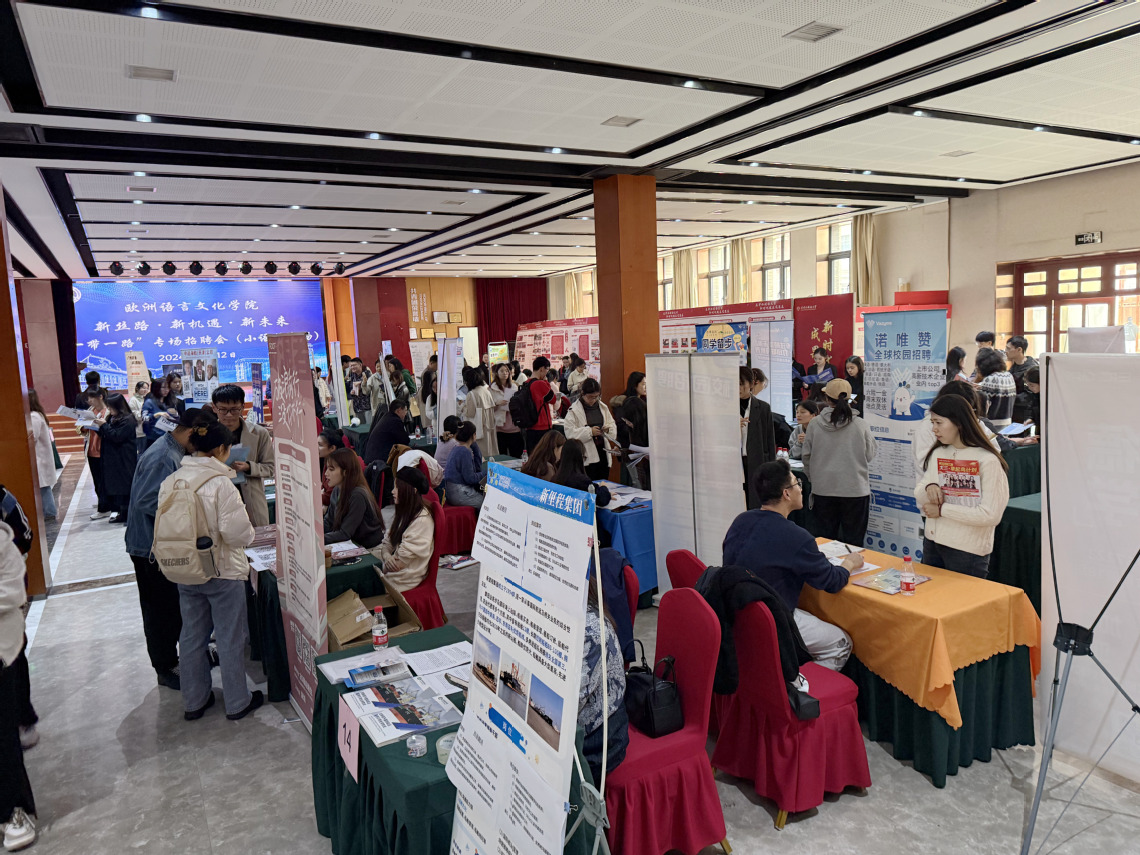 为全面贯彻落实党中央、国务院关于就业工作的决策部署,服务“一带一路”倡议,全力促进乐鱼·体育2025届毕业生实现高质量充分就业,11月12日,天外欧洲语言文化学院在马场道校区大学生活动中心举办新丝路·新机遇·新未来——“一带一路”专场招聘会(多语种专场)。副校长朱鹏霄深入招聘会现场。欧洲语言文化学院党委书记杨颖、党委副书记周倩、团委辅导员与企业和学生现场交流。