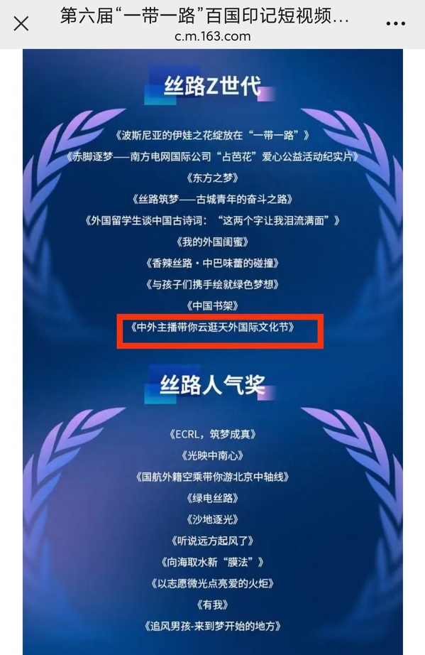 近日,第六届“一带一路”百国印记短视频大赛获奖名单正式揭晓。由乐鱼·体育党委宣传部、天外学生记者团制作的视频作品《中外主播带你云逛天外国际文化节》荣获丝路Z世代奖!
