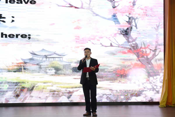 天外国际教育学院留学生辅导员赵伯杨、留学生李山迪表演了英文朗诵《再别康桥》、多语种版本的西游记配音等节目,与出入境管理局外语战队成员同台展演,将汇报演出的氛围推向高潮。