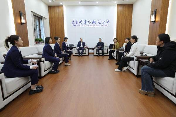 天外副校长余江会见吴绍勇一行,并介绍了天外历史沿革、人才培养、2025届毕业生情况,与万嘉集团就校企合作开展探讨。他向吴绍勇颁发了天外就业创业导师聘书。招生就业处、英语学院、欧洲语言文化学院、国际商学院相关负责人参会。