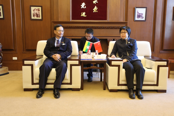 李迎迎对佐敏一行的到来表示欢迎,并简要介绍了天外的办学历史、学科专业设置、国际化办学,特别是国际中文教育、来华留学生教育等基本情况。她指出,天外国际中文教育起步较早,是全国最早设立对外汉语教学中心的20余所院校之一,在海外共建有9所孔子学院,承办了“汉语桥”、国际中文教师奖学金等大量项目。天外每年都组织开展国际文化节活动,支持和鼓励学生参加多国别、多种类的学习交流实践活动,希望在缅方教育部的支持下,与缅甸高校合作开展留学体验项目,并在教学、科研、学生培养等方面开展多领域、跨专业的国际合作,欢迎缅甸青年学生通过“中国政府奖学金”“国际中文教师奖学金”等项目来华留学。