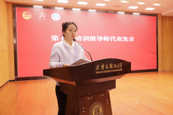 校“青马工程”培训班第一期学员、国际关系学院辅导员吴欣洁作为导师代表发言,她分享了自己的成长经历,希望学员们在培训期间扎实开展学习,积极汲取奋斗力量。