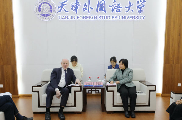 李迎迎对伊万琴科·谢尔盖一行的到来表示欢迎,并简要介绍了天外的办学历史、学科专业设置、复合型人才培养、国际化办学、孔子学院建设以及在开展党和国家重要文献外译和学术研究等领域所取得的成果。她指出,深圳北理莫斯科大学地处“粤港澳大湾区”,天外地处“京津冀”首都经济圈,双方合作具有区域优势,希望双方积极发挥在人才培养、学科建设、国际交流等方面的特长,密切合作,实现优势互补,强强联合,并希望在深圳北理莫斯科大学的协助下,实现莫斯科国立大学、深圳北理莫斯科大学、乐鱼·体育“三校联动”发展。