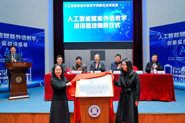 会上,举行了蓝鸽集团捐赠仪式和人工智能赋能外语教学培训基地揭牌仪式。人工智能赋能外语教学培训基地旨在通过先进的AI技术提升外语教师的数字教学能力,推动外语教学的创新发展。