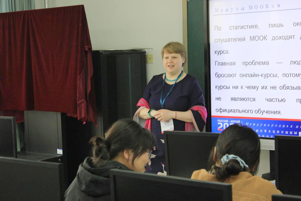 柳∙伊∙舍斯塔科娃在培训中详细分析了在线课程的教学法设计,深入探讨了慕课(MOOC)在语言教学中的优势与局限,提出了如何在大规模在线学习环境中保持教学质量与学生参与度的创新方法。