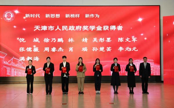 校领导为天津市人民政府奖学金获得者颁发荣誉证书