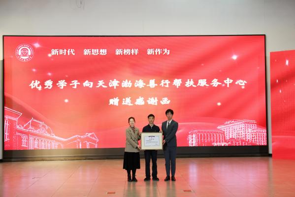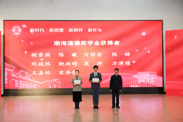 李天学为渤海道德奖学金获得者代表颁发证书