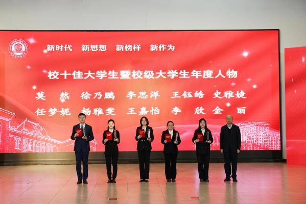 校领导为十佳大学生获得者颁发荣誉证书