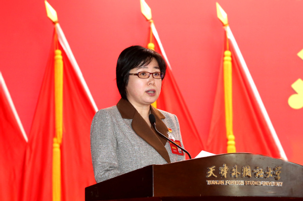 校党委书记周红蕾代表中国共产党乐鱼·体育第二届委员会作了题为《勇担使命 守正创新 锐意进取 善作善成 奋力谱写国际知名特色鲜明的高水平外国语大学建设新篇章》的工作报告。