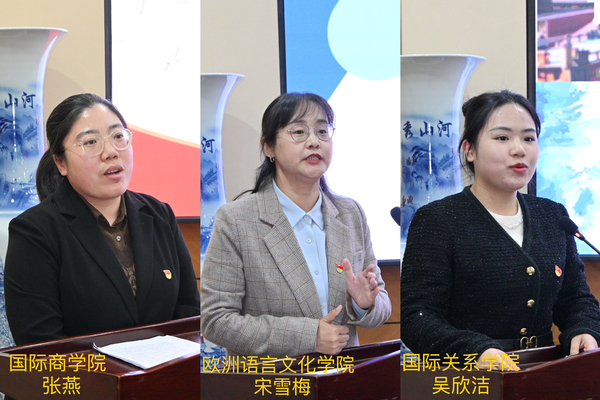 在辅导员代表发言环节中,国际商学院辅导员张燕以“至亲至善至知己,亦师亦友亦比邻”为题,代表成长导师分享了自己发挥“传帮带”作用的工作心得;国际关系学院辅导员吴欣洁和欧洲语言文化学院辅导员宋雪梅分别以“两个宝典三心赋能,让学生工作有深度有效度有温度”“做到‘点对点’,方能‘实打实’”为题,围绕辅导员工作手册和宿舍七彩民情图的使用体会进行了交流。她们的精彩发言展现了学校学工队伍勤学善思、实干担当的精神风貌。
