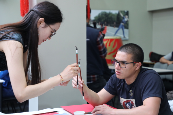 当日,孔子学院教室变身书法课堂。孔子学院教师深入浅出地讲解汉字的演变和书写技巧,手把手教学生们书写“福”和“家”两个饱含新春祝福的汉字。学生们全神贯注,一笔一划认真临摹,感受着汉字书法艺术的独特魅力。