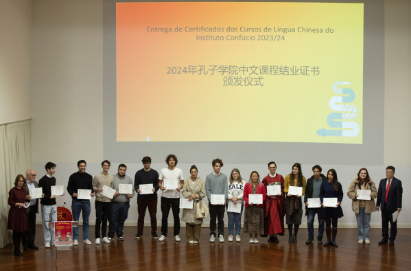 活动中,中葡院长为2024年度里斯本大学孔子学院中文课程的优秀学员颁发结业证书,见证他们在中文学习道路上的成长。
