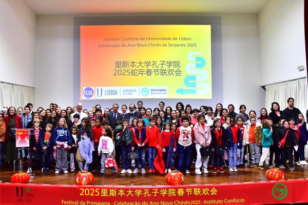金蛇起舞迎新岁,瑞气呈祥贺丰年。近日,葡萄牙里斯本大学文学院的礼堂张灯结彩,喜庆热烈,一场洋溢着浓郁中国文化氛围的蛇年春节暨元宵节庆祝活动拉开了序幕。中国驻葡萄牙大使馆教育事务负责人陈默,葡萄牙教育部学校总局卢尔德·安德里诺,葡萄牙奥埃拉什市教育局长宝拉·罗德里格斯,葡萄牙里斯本大学副校长若昂·佩索托,里斯本大学文学院院长费尔南德斯,里斯本大学孔子学院中葡方院长、师生、中国留学生及社会各界人士等300余人欢聚一堂,共庆新春佳节。