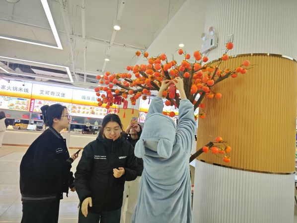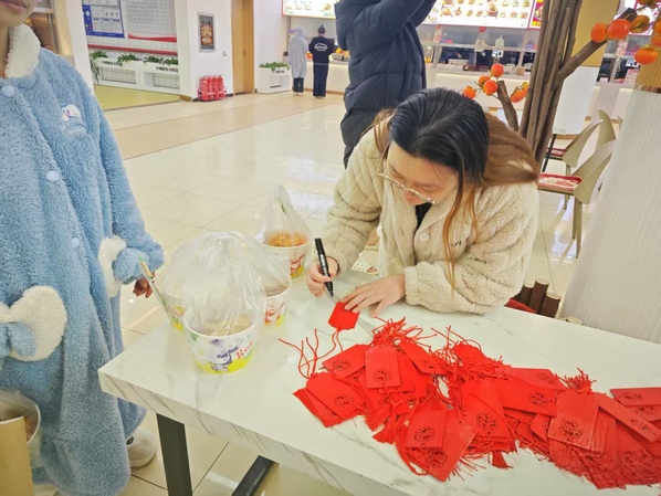 学生食堂为学子们准备了心愿卡,同学们可以写下新学期寄语悬挂在树上,祝福同学们在新的一年学习进步、心想事成!