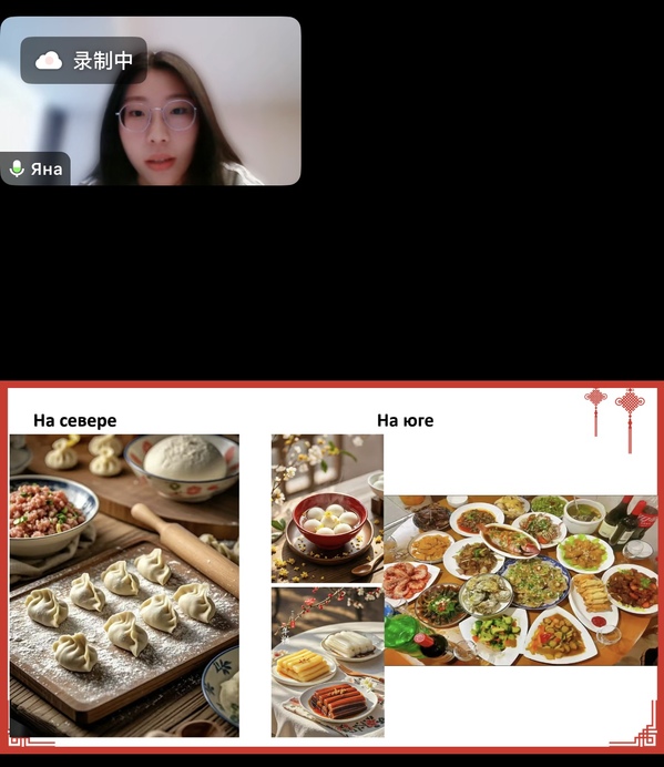 俄语系学生详细介绍了中国春节的丰富习俗,包括南北方的差异和特色民俗。通过图片和视频展示,双方对“中俄新年”有了更深刻的认识。在互动环节,同学们积极提问,深入交流,进一步增进了对彼此文化的了解和尊重。