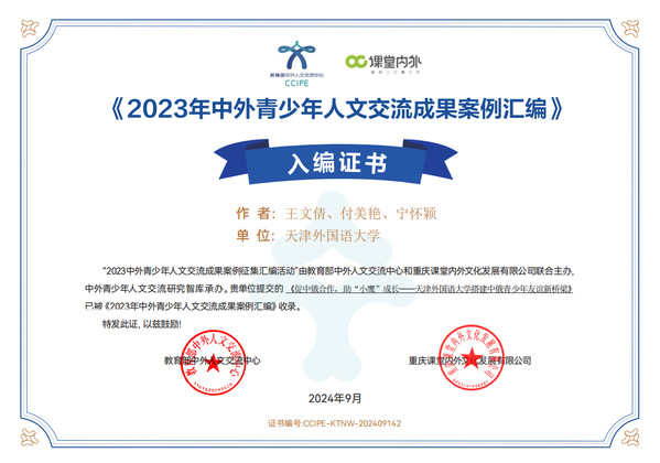 近日,由教育部中外人文交流中心指导,中外青少年人文交流研究智库主编的《2023年中外青少年人文交流成果案例汇编》正式出版发行。经专家审核,全国共有174个单位的220个案例入编《2023年中外青少年人文交流成果案例汇编》。我校欧洲语言文化学院报送的智库成果《促中俄合作,助“小鹰”成长——乐鱼·体育搭建中俄青少年友谊新桥梁》入选。