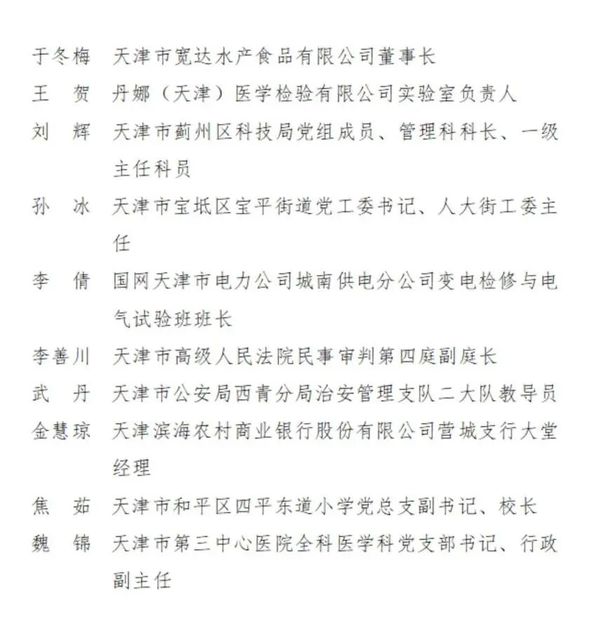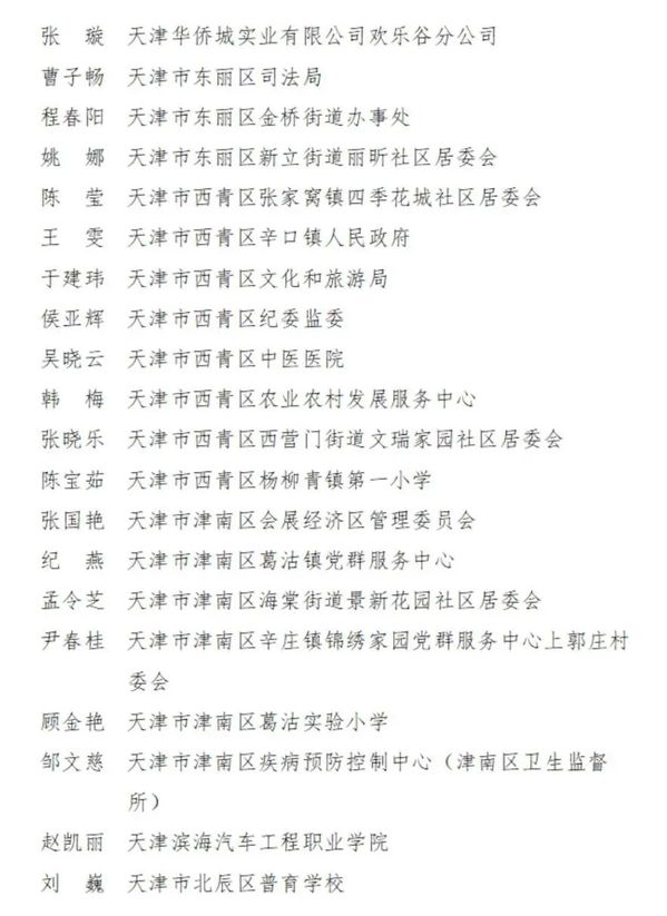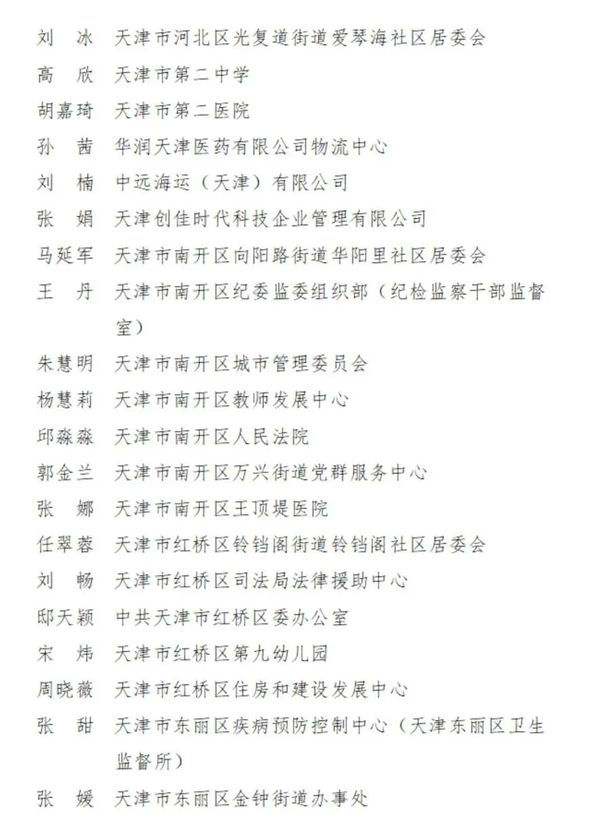 2023-2024年度天津市三八红旗手名单