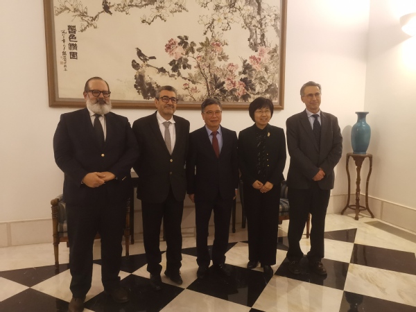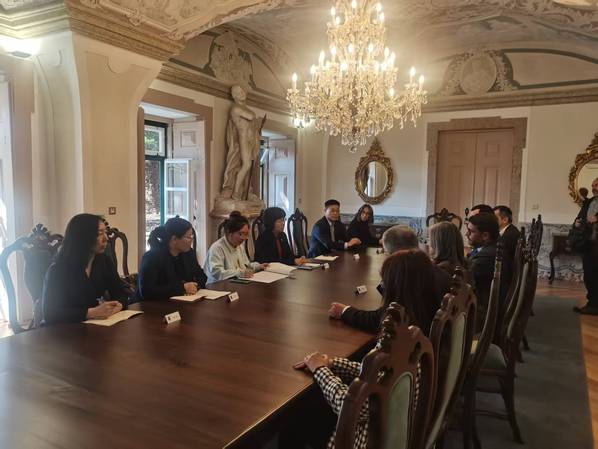 访问期间,代表团拜会了我国驻葡萄牙大使馆,与我国驻葡大使赵本堂沟通交流,并着重汇报了里斯本大学孔子学院建设情况、葡萄牙孔子学院联盟筹备情况、学校与葡萄牙高校交流与合作等情况,均得到使馆积极回应和大力支持。周红蕾还听取了里斯本大学孔子学院的工作汇报,看望了在孔子学院工作的教师、在里斯本大学学习的天外学子,并进行了座谈交流。