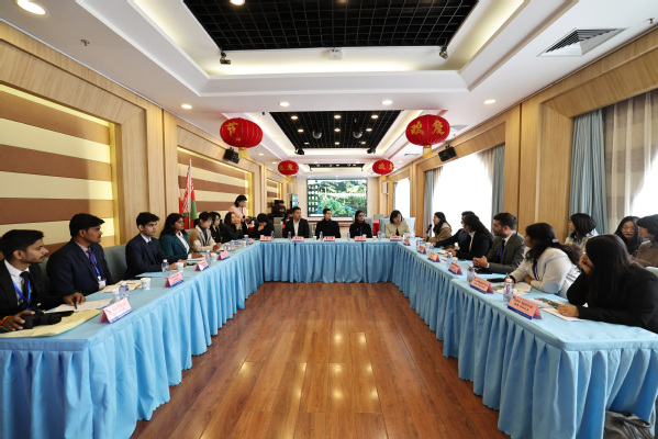 研修班天津首站来到乐鱼·体育,校长李迎迎会见了代表团全体成员。李迎迎表示,中印同为文明古国,青年是两国友好的未来,希望以此次交流为契机,推动中印青年在语言教育、学术研究、创新创业等领域的合作,为中印两国青年友好交流搭建桥梁。印方团长阿努朱·亚达夫(Anju Yadav)首先表达了对天外热情接待的感谢,她表示研修班青年代表高度赞赏中国高等教育的发展成就,她希望今后中印青年在科研、创业、科技创新、文化互访等领域开展更多富有实效的合作。会见结束后,双方还就中国扩大高水平对外开放和中印青年合作机遇等话题举行主题讲座和座谈交流。