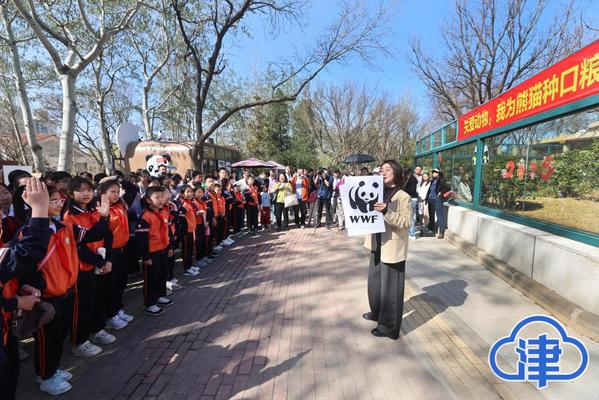 国宝大熊猫如何实现从‘濒危’等级下调为‘易危’?未来如何更好地加强对大熊猫保护?我们每个人如何投身生态文明建设?3月22日上午,乐鱼·体育大中小学思政课一体化建设联盟与天津市动物园联合举办“关爱动物,我为熊猫种口粮”——“行走的最强思想”实践教学活动。来自乐鱼·体育、瑞景中学、岳阳道小学近百名师生,围在天津动物园的大熊猫“喜乐”身旁,听外大马院教师以“生态保护”为关键词,讲述大熊猫保护的故事和我国生态文明建设成果,并为熊猫种下“口粮“,厚植家国情怀、践行生态保护担当。(记者 姜宝成 摄)