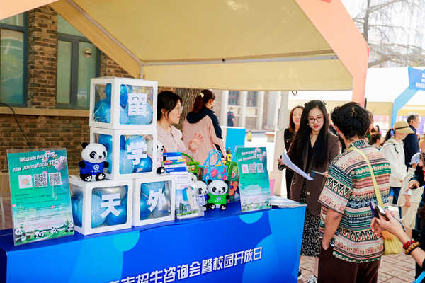 现场特设的天外本科生、研究生各学院招生宣传展位和留学生招生宣传展位前人头攒动,不少市民前来咨询交流。