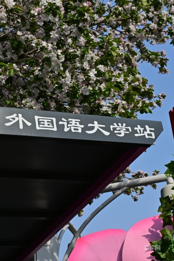 外国语大学公交站海棠花盛开(央广网发何冰玉摄)