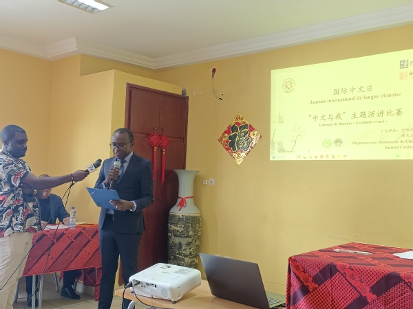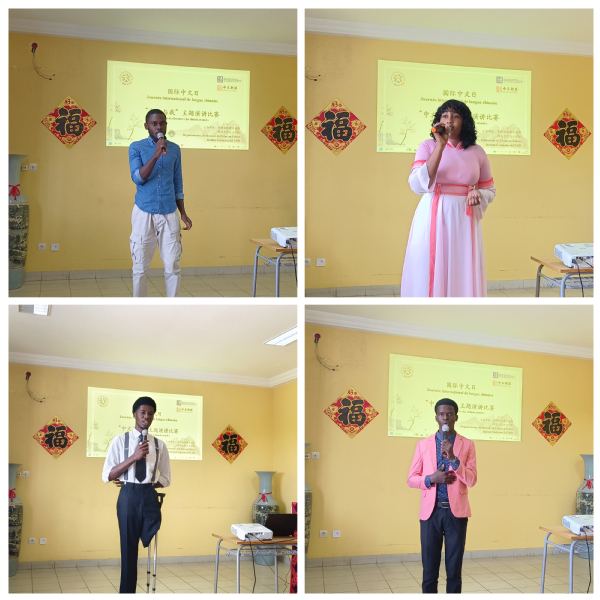 致辞结束后,“中文与我”演讲比赛正式开赛。中国驻加蓬大使馆、援加医疗队、加蓬华侨华人协会、加中友好协会以及中资企业的5名代表担任评委。12名选手用流利的中文围绕“中文与我”依次展开主题演讲,生动讲述了自身学习汉语的真实故事与难忘经历,充分展现了加蓬青年学子的良好风貌。
