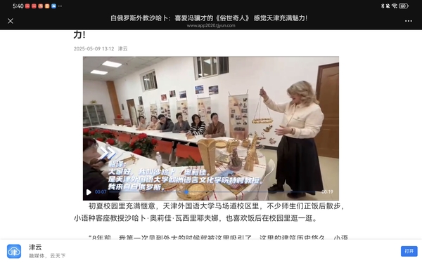 “8年前,我第一次见到外大的时候就被这里吸引了,这里的建筑历史悠久,小语种专业也很强,所以我不远万里来到中国工作,希望把白俄的文化传播到天津,也把天津的历史、文化故事带回白俄,架设交流‘桥梁’”,这位来白俄罗斯的文化传播者,将天津当做了自己的第二个家。
