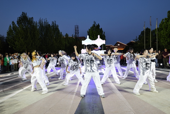 演出在天外艺术团PU街舞社的《舞力全开》中拉开帷幕。动感的节奏、酷炫的舞步瞬间点燃现场气氛,展现着青年学子的蓬勃朝气。随后,意大利籍教师Alberto Casartelli怀抱吉他深情演绎原创歌曲《永远》与《归来仍是少年》,用音乐诉说热爱与执着,引发全场共鸣。艺术团花漾民舞社的《淡妆浓抹总相宜》以水袖翩跹、裙裾流转的古典舞姿,将观众带入“淡妆浓抹总相宜”的江南画卷。OST乐团以一曲《鲜花》唱响青春的炽热与倔强,吉他与鼓点的碰撞中,现场气氛再度升温。