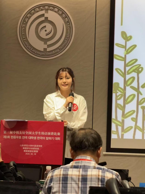 本届比赛由山东师范大学外国语学院联合韩国学中央研究院和韩国旅游发展局共同主办,旨在培养具有国际视野、创新意识和家国情怀的国际化人才。评委组评价谢合拉·西尔艾力的演讲“立意深远、逻辑严密,以文化共鸣传递和平愿景”,充分彰显了天外在外语人才培养和跨文化研究领域的卓越实力。