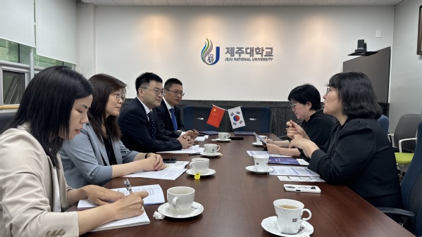 在济州大学,朱鹏霄与该校副校长金恩希会谈,并重新签署了两校合作协议,重启两校已中断多年的合作关系。双方一致同意,重启两校之间的学生交流与联合培养,积极推动教师互访与其他合作。2025年暑期,济州大学将优先接收天外派遣的5名优秀学生到济州大学开展多国别多校园文化体验,并减免相关费用。