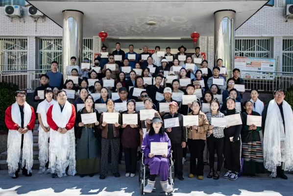 随后举行的结业证书颁发仪式,标志着学员们圆满完成了培训任务。仪式最后,全体学员向工作队老师们献上了洁白的哈达并合影留念,记录下这一富有纪念意义的时刻。