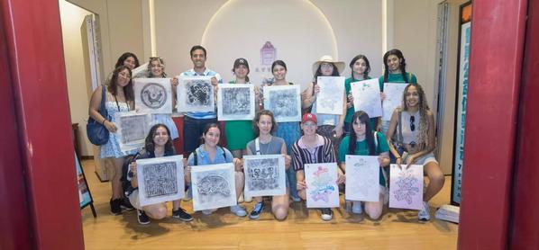 Portuguese students display their Yangliuqing New Year paintings. [Photo provided to chinadaily.com.cn]