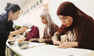 “汉语桥”团组带队教师法哈夫说:“中国和阿曼都有着悠久的历史,两国之间的友谊源远流长,人文交流也在进一步增强。在今天的参观活动中,我们不仅收获了视觉享受,还进行了动手体验,对天津图书馆的藏书系统和非遗体系也有了更多了解。中国的文化和语言让我受益匪浅。我的学生们对这次活动也非常感兴趣,特别是古籍修复,我希望能把修复古籍的经验带回阿曼,将来运用在教学中。”