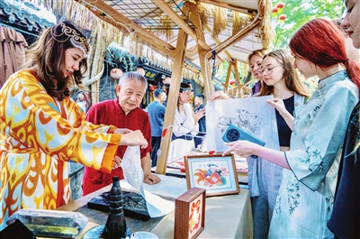 昨日,古镇津韵国际文化市集在西青区杨柳青古镇举办。